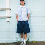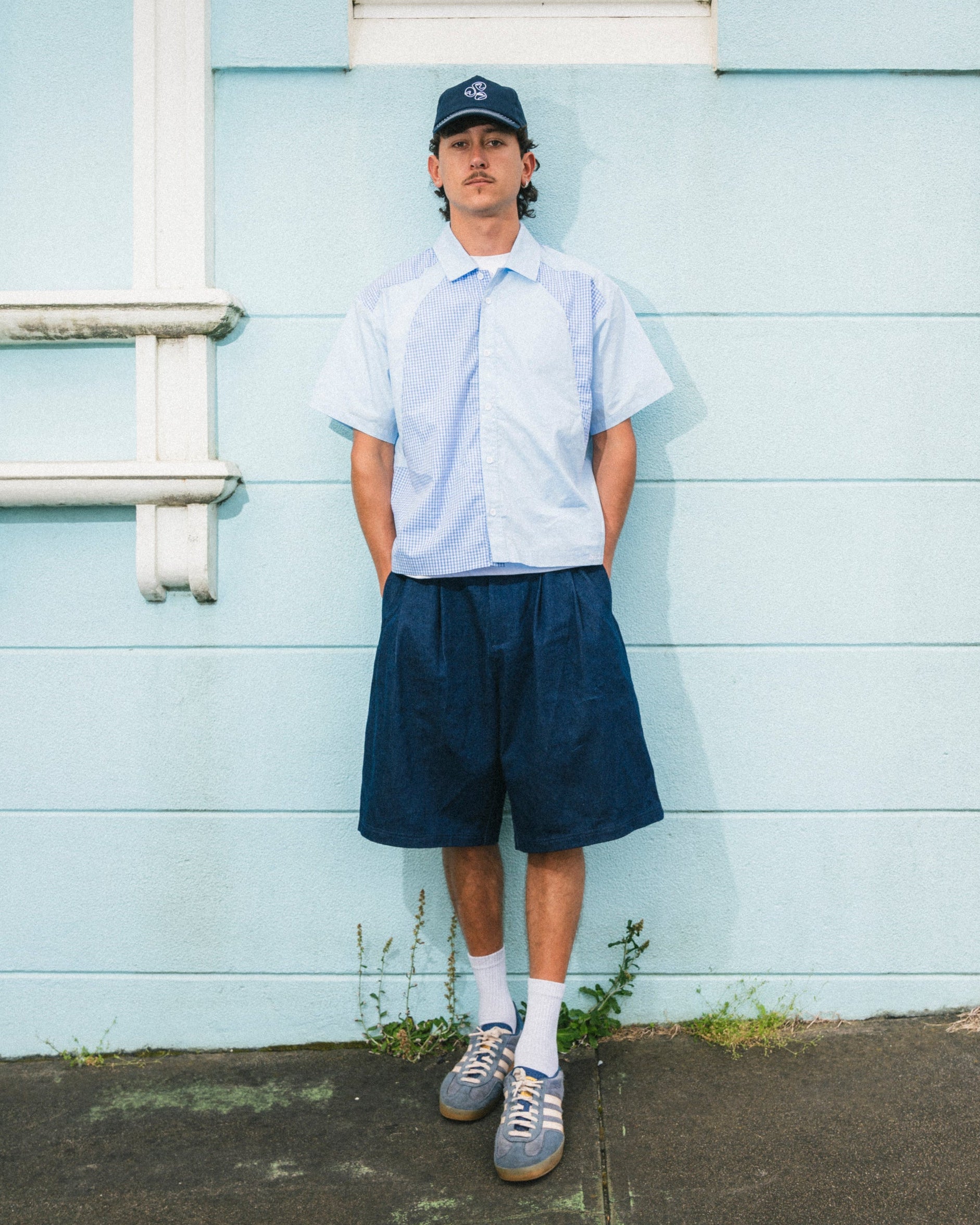 Plaid check cut & sew with light blue fabric.